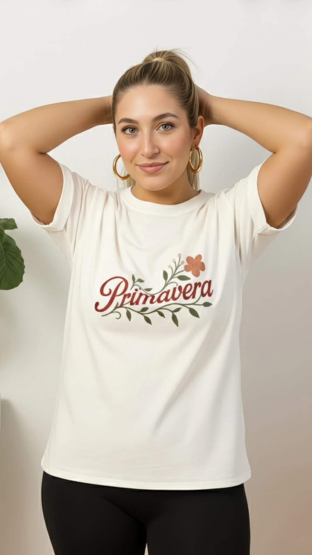 La Remera Primavera celebra la frescura y el renacer de la naturaleza. Con su tipografía delicada en tonos suaves y detalles florales, transmite alegría, vitalidad y un aire romántico. Una prenda ligera y femenina que combina comodidad con un diseño encantador, ideal para looks diarios llenos de energía positiva.